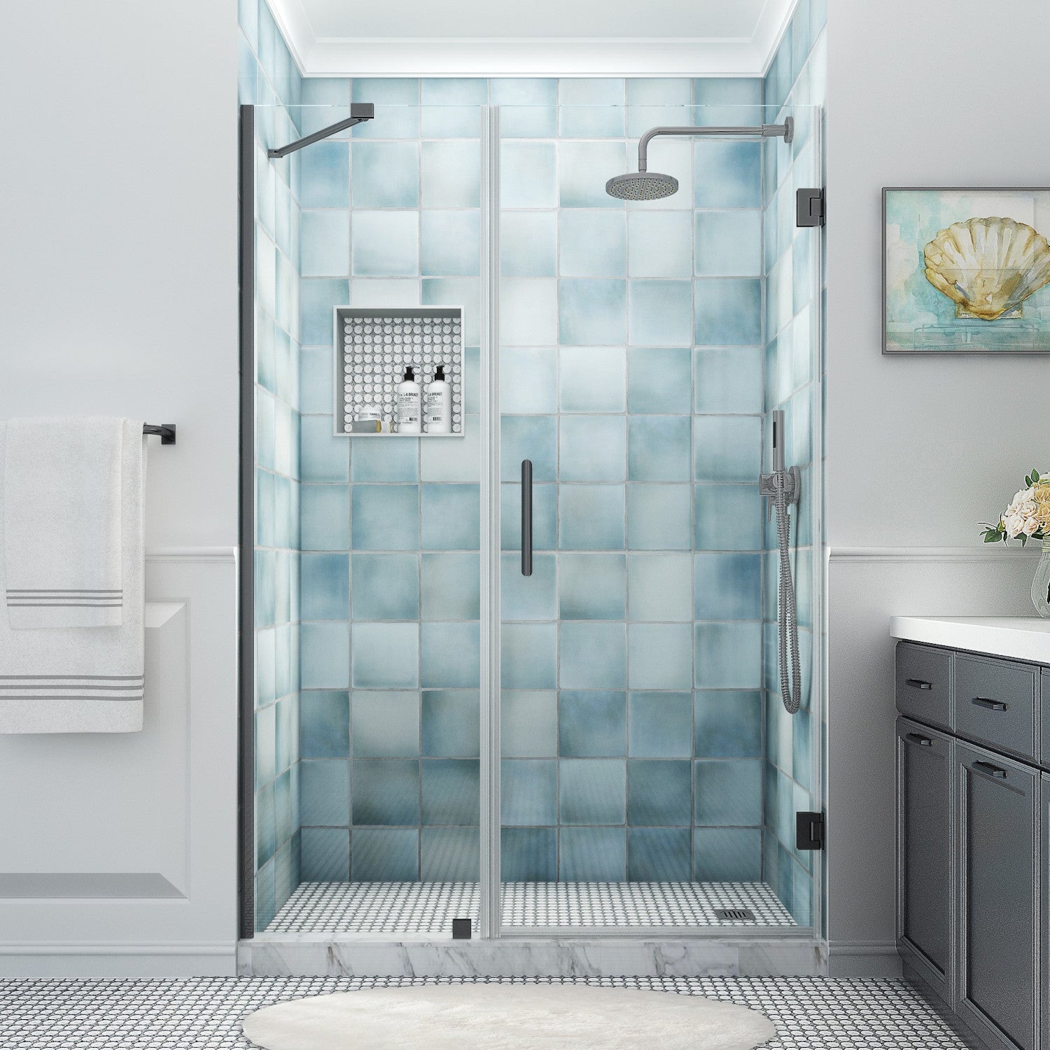 Belmore XL 57.25 in. to 58.25 in. W x 80 in. H Frameless Hinged Shower Door with Clear Glass in Matte Black (34 in. Door and 24 in. Fixed Panel)