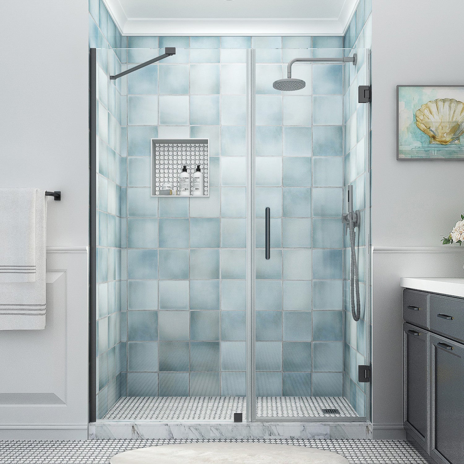 Belmore XL 60.25 in. to 61.25 in. W x 80 in. H Frameless Hinged Shower Door with Clear Glass in Matte Black (37 in. Door and 24 in. Fixed Panel)