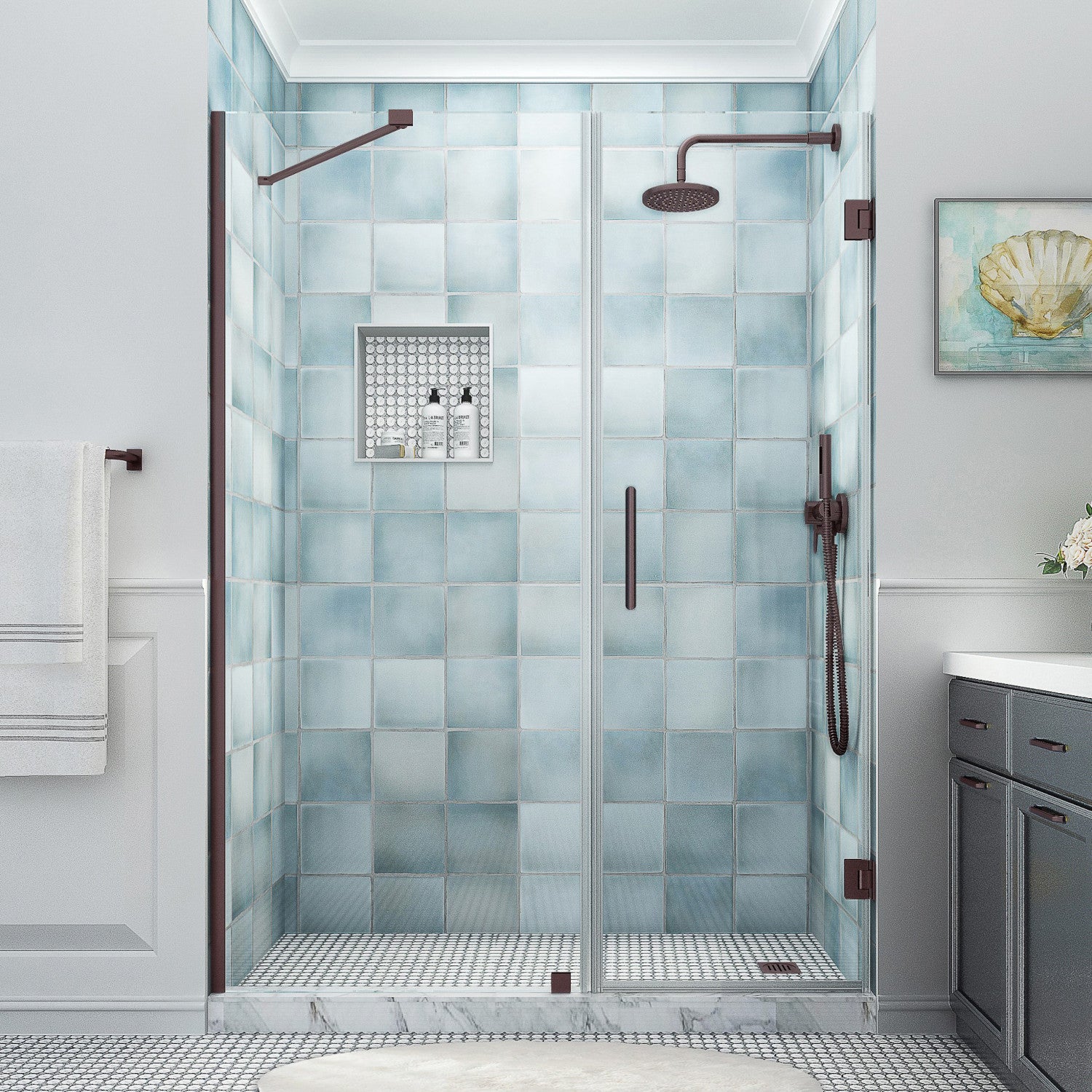 Belmore XL 58.25 in. to 59.25 in. W x 80 in. H Frameless Hinged Shower Door with Clear Glass in Bronze (35 in. Door and 24 in. Fixed Panel)