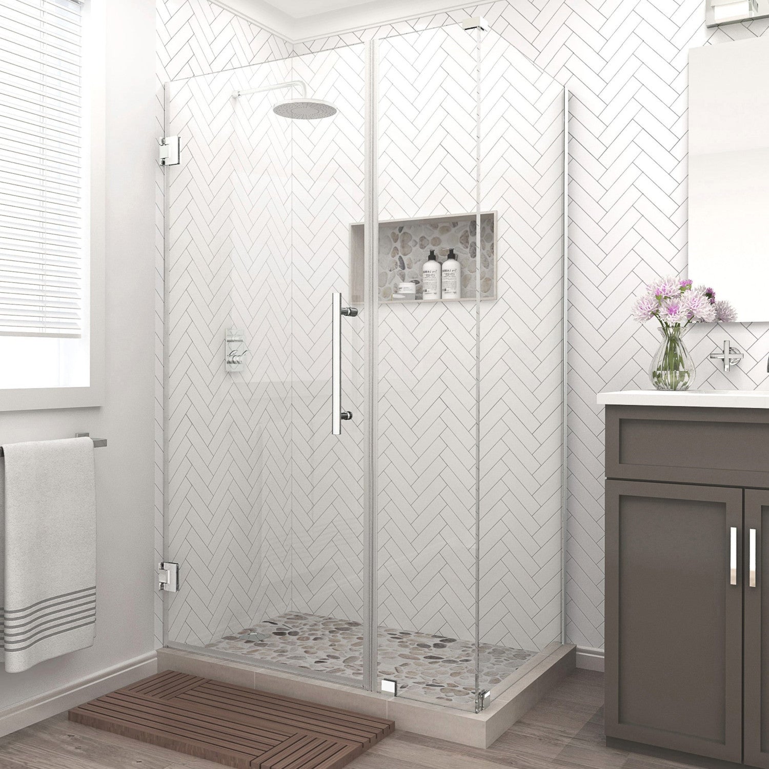 Bromley 45.25 in. to 46.25 in. W x 32.375 in. D x 72 in. H Frameless Hinged Shower Enclosure with Clear Glass in Chrome (32 in. Door, 14 in. Fixed Panel, and 32 in. Return Panel)