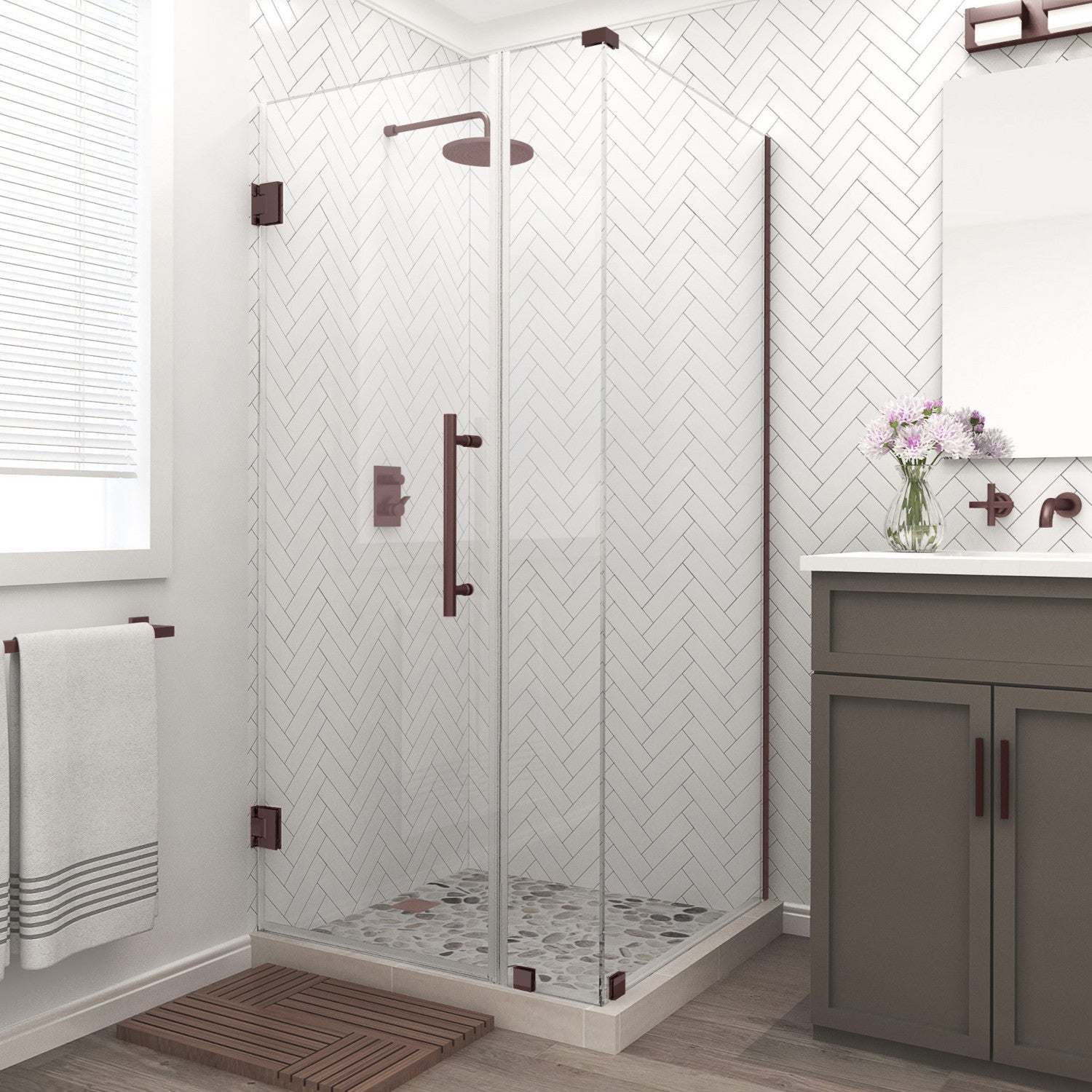 Bromley 41.25 in. to 42.25 in. W x 30.375 in. D x 72 in. H Frameless Hinged Shower Enclosure with Clear Glass in Bronze (36 in. Door, 6 in. Fixed Panel, and 30 in. Return Panel)
