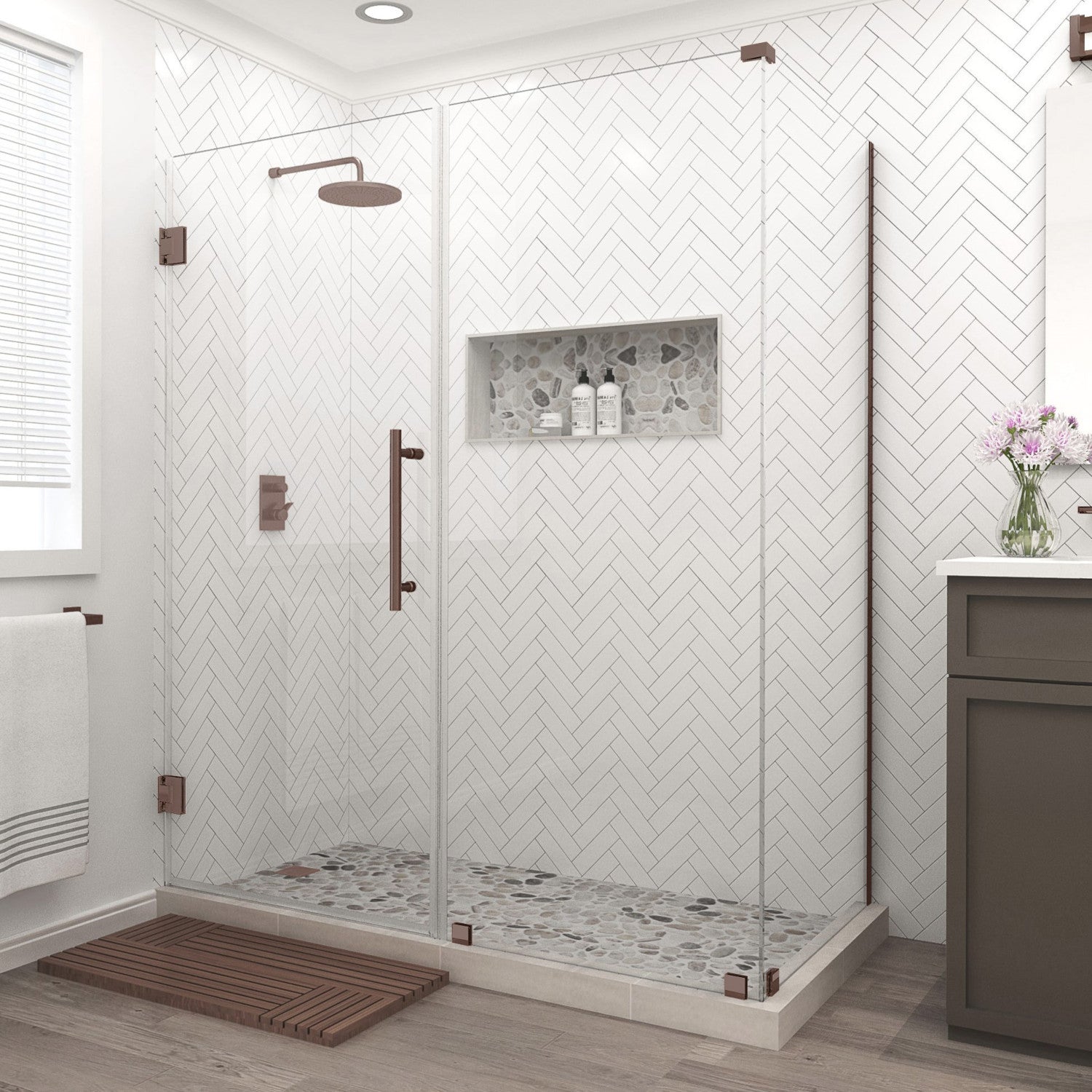 Bromley 65.25 in. to 66.25 in. W x 34.375 in. D x 72 in. H Frameless Hinged Shower Enclosure with Clear Glass in Bronze (30 in. Door, 36 in. Fixed Panel, and 34 in. Return Panel)
